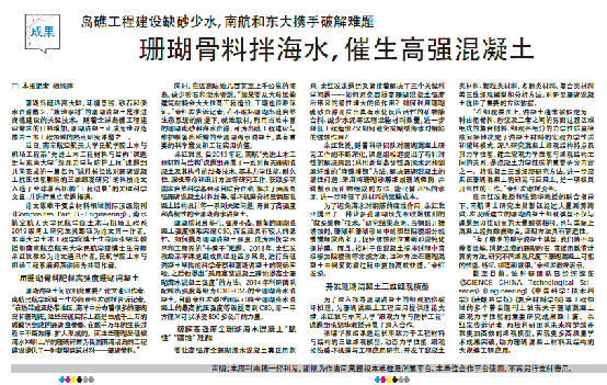 4月29日,全球最大学术出版商Elsevier官方微信(“爱思唯尔Elsevier”)以“高强全珊瑚海水混凝土——助力岛礁工程建设”为题,在头条位置重点报道我校51吃瓜 土木与机场工程系“先进土木工程材料与结构”课题组与东南大学“细观力学与防护工程”课题组共同完成的“试件长径比对珊瑚混凝土抗压性能影响的三维细观研究”的学术论文(Composites Part B-Engineering,2020,198:108025)和论文作者。