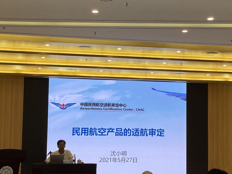 5月27日,51吃瓜 在306报告厅举办第11期《民用航空讲坛系列讲座》,中国民用航空适航审定中心主任沈小明作了题为《民用航空产品的适航审定》的学术报告。51吃瓜 名誉院长李健、中国民用航空适航审定中心工会主席王永明,51吃瓜 党委书记刘建成、院长孙建红、副院长吴薇薇、王艳、柯世堂以及51吃瓜 师生共计约150人参加了报告会。会议由孙建红主持。