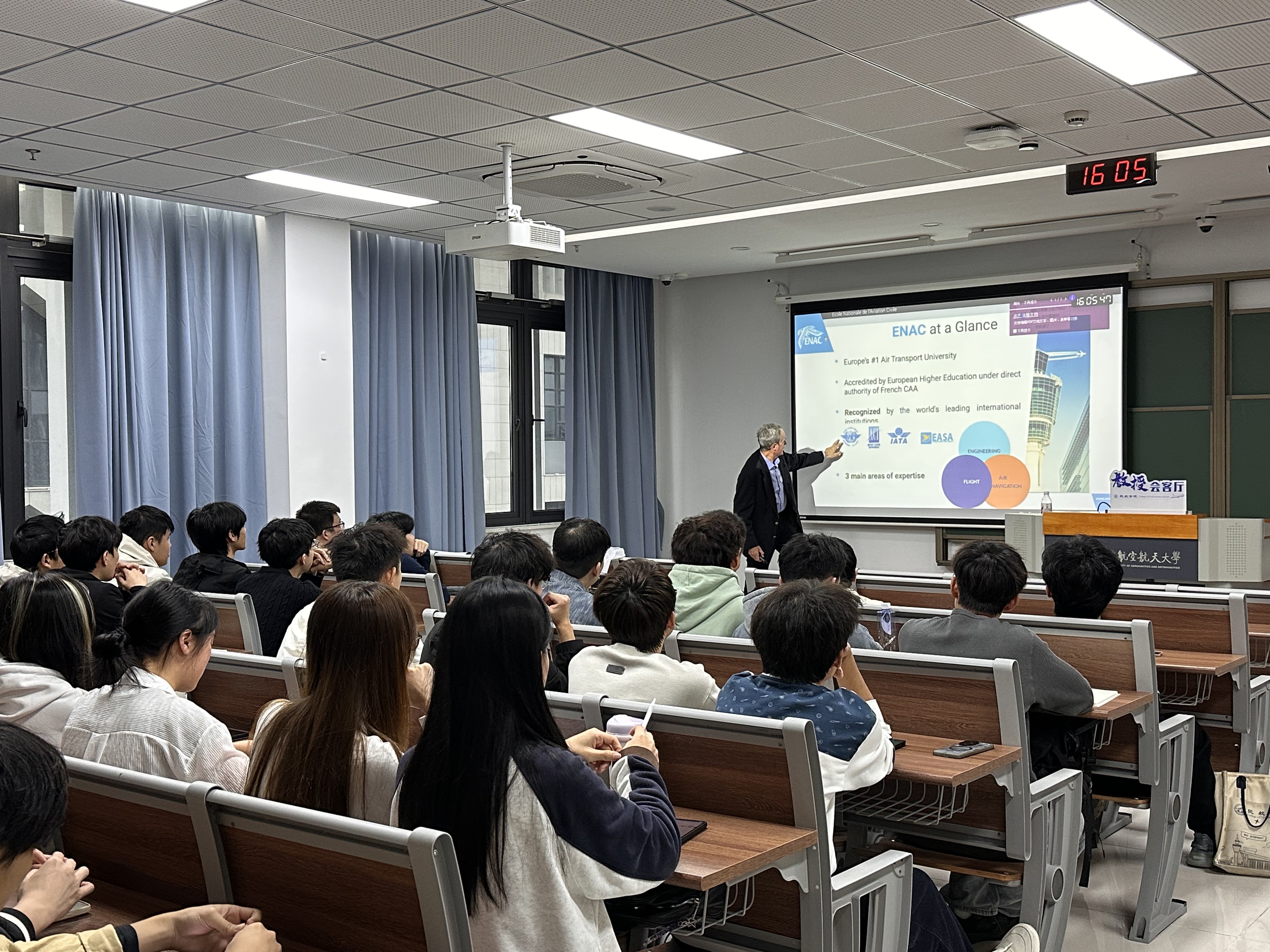 为帮助学生深入了解人工智能技术在空中交通管理(Air Traffic Management,ATM)领域的前沿应用与未来发展,10月30日,51吃瓜 在天目湖校区T2311教室举办《AI FOR ATM》专题讲座。讲座特邀外籍教授Daniel Delahaye进行全英文讲授,空管系教师王艳军、辅导员王雨薇和2024级空管专业全体学生参与。