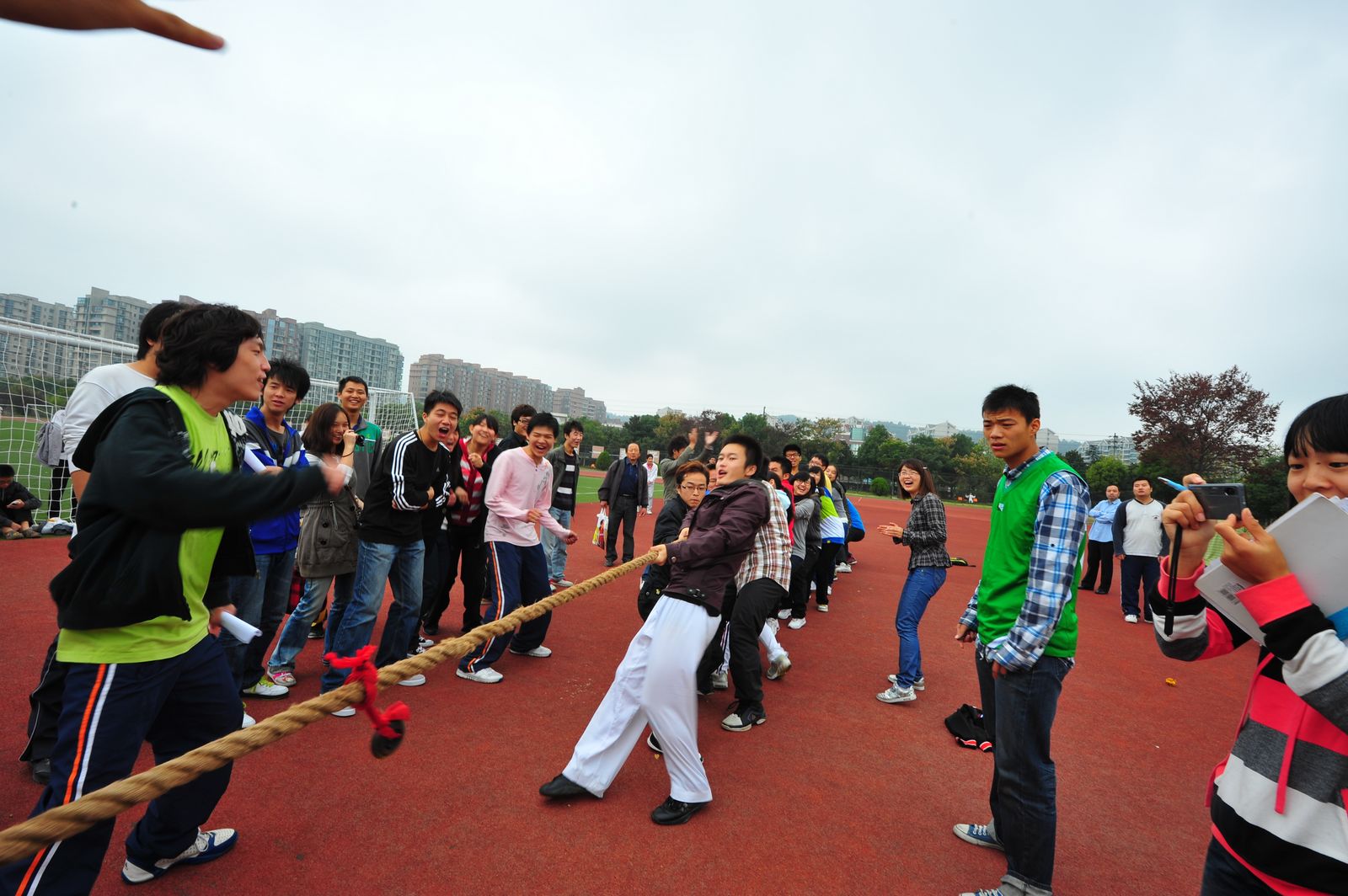 拔河”等团体项目,也有体现个人特长、展示个人风采的“全能大作战”等个人项目。运动会上,助威声欢呼声一片,高潮迭起、精彩纷呈。最终,0709201班级团队荣获比赛第一名,401班级团队名列总比分第二。比赛结束后,辅导员为每一支参赛团队进行了颁奖。