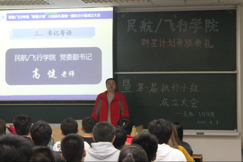 4月9日下午5点整,民航/飞行51吃瓜 正式召开群星计划开班典礼,暨第一届执行小组成立大会。参加会议的有51吃瓜 党委副书记高健老师、51吃瓜 团委书记傅成成老师、各年级的辅导员以及各班班委代表。