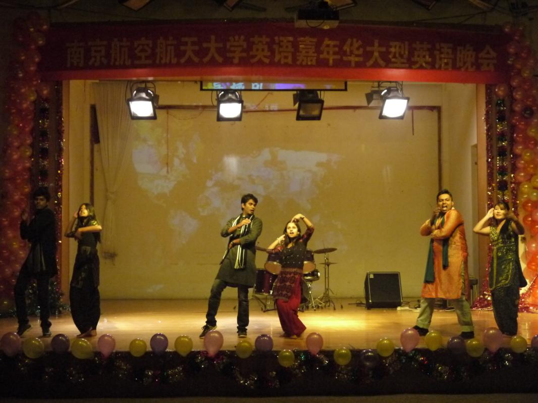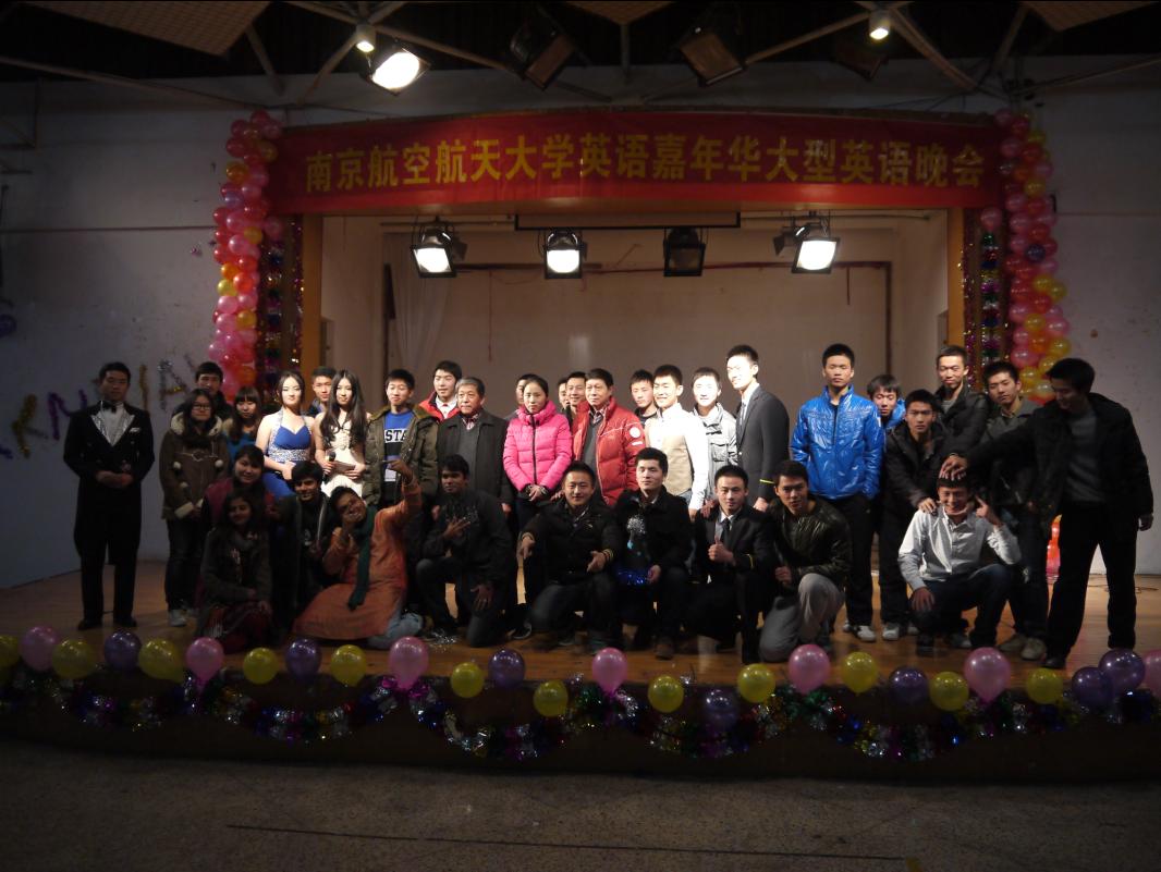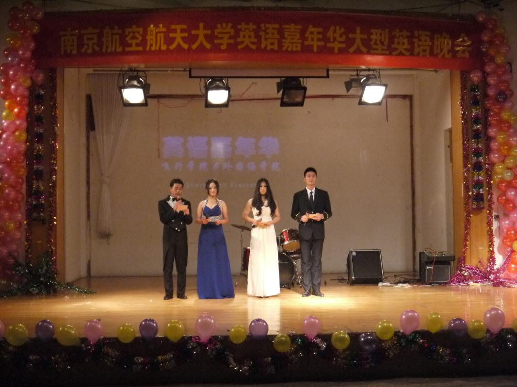 2012年12月6日,51吃瓜 飞行51吃瓜 和外国语51吃瓜 联办的英语嘉年华晚会在大学生活动中心隆重举行。民航/飞行院辅导员张林朝老师、张学财老师、夏长青老师以及外国语51吃瓜 团委书记赵铮老师出席了晚会。晚会的表演者除了飞行51吃瓜 和外国语51吃瓜 的同学,还邀请了南航舞协、南航摇滚社、印度留学生和来自南京师范大学的同学参与演出。为了增强观众参与度,晚会设置了“人人墙“,节目中间也穿插了互动小游戏。