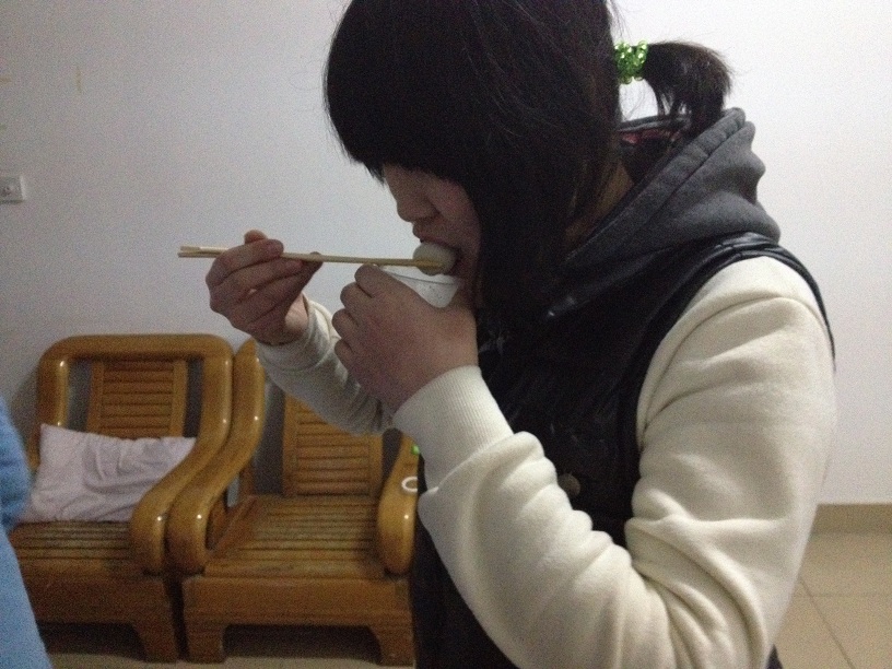 8点半一到,401宿舍门口早已排出了长长的队伍,大家都在等待着那碗热气腾腾的元宵。领到元宵的同学或是回到宿舍给家中父母打电话报平安,或是留在401宿舍和同学们一起观看元宵晚会。虽然元宵的数量并不多,但是情意甚浓。其它同学听说这边在吃元宵,也都飞奔着过来并加入其中。大家在一张中国地图上在自己家乡的位置做了标记的符号,地图上的一架架小飞机扬起了尾翼,一颗颗五角星闪动着光芒。来自祖国各地的同学们齐聚一堂,欢度元宵佳节,好不热闹!