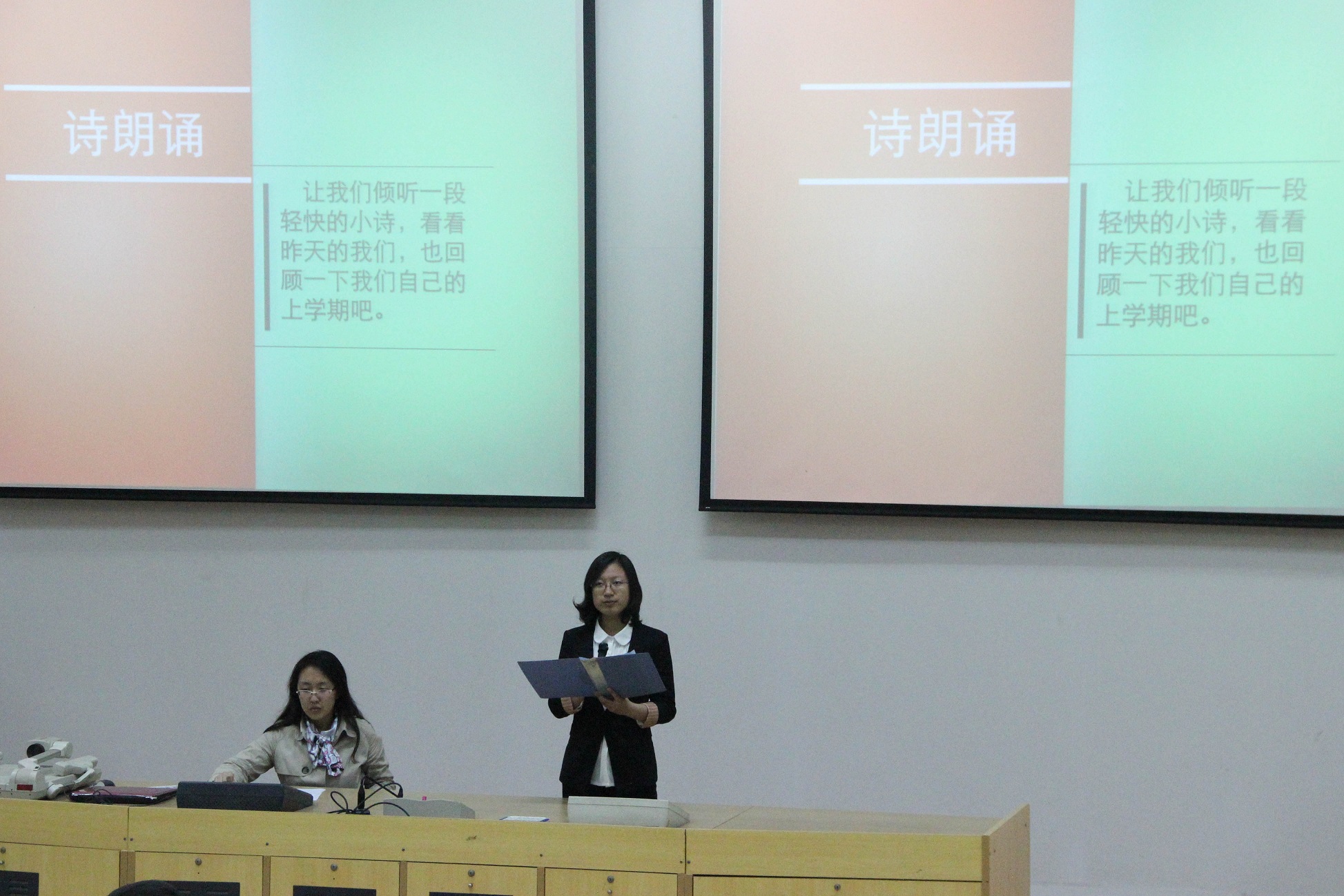 “缤纷旧日”以一首轻松基调的诗朗诵回顾了上学期同学们的学习生活,伴着诙谐的诗朗诵,一张张往日的照片浮现在眼前。班级展示环节,通过绚丽的视频回顾上学期开展各类活动的点滴画面,秀出了本班的特色与风采。