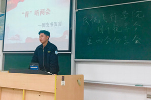 18级民航团总支朱凯凯主要从政风反腐、脱贫致富、科技创新等方面做了自己的分享;18级飞行二中队秘书长黄邹洵主要讲述两会中有关民航的问题。通过他们的解读,不仅能够看出团干们对于两会精神有了充分的认识,还对民航事业未来的发展有了持续的关注。